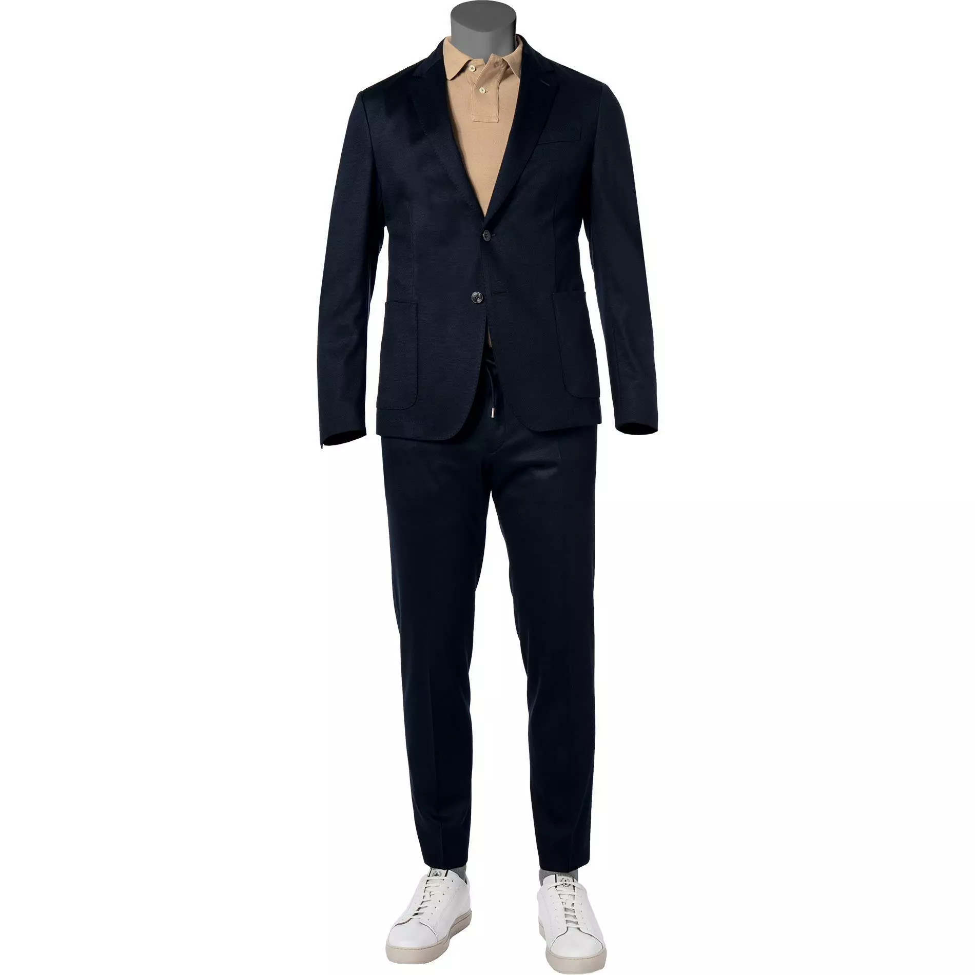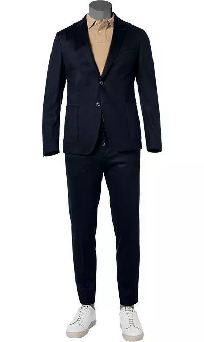 Eine elastische Jersey-Qualität in cleaner Optik kombiniert mit einer schmalen Passform, macht diesen Zweiteiler zu einem stilvollen Begleiter mit viel Tragekomfort. Ein komfortabler Hosenbund mit einem Elastikeinsatz und mit Kordelzug erinnert an eine trendige Jogpants und verleiht diesem eleganten Anzug einen sportiven Charakter.