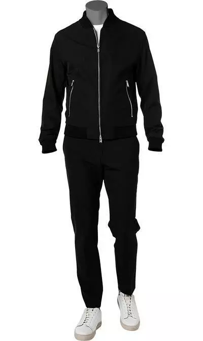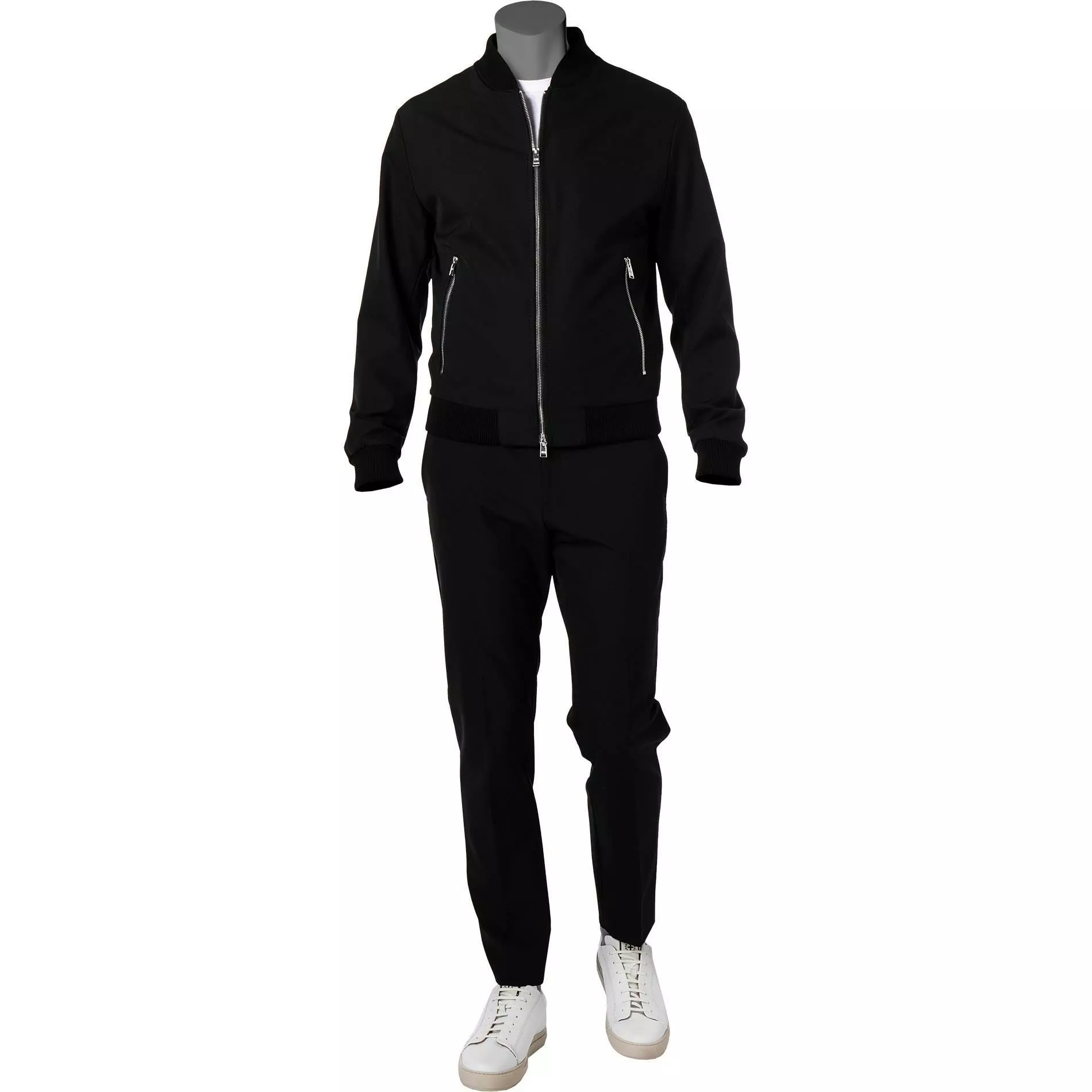 Eine lässige Interpretation zum klassischen Zweiteiler ist dieser Anzug. Das Design präsentiert sich im smarten Stil und überzeugt im modernen Look mit einem hochwertig gearbeiteten Blouson und einer Jogpants. Die hochwertige Verarbeitung und die italienische Qualität mit Stretch Anteil, begeistern und sorgen hierbei für komfortable Trageeignschaften bei einer schlanken Schnittführung. Rippenstrickbündchen am Blouson, geben dem Gesamtbild eine sportive Note.