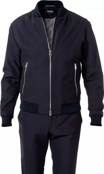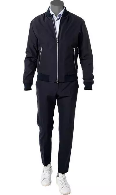 Eine lässige Interpretation zum klassischen Zweiteiler ist dieser Anzug. Das Design präsentiert sich im smarten Stil und überzeugt im modernen Look mit einem hochwertig gearbeiteten Blouson und einer Jogpants. Die hochwertige Verarbeitung und die italienische Qualität mit Stretch Anteil, begeistern und sorgen hierbei für komfortable Trageeignschaften bei einer schlanken Schnittführung. Rippenstrickbündchen am Blouson, geben dem Gesamtbild eine sportive Note.