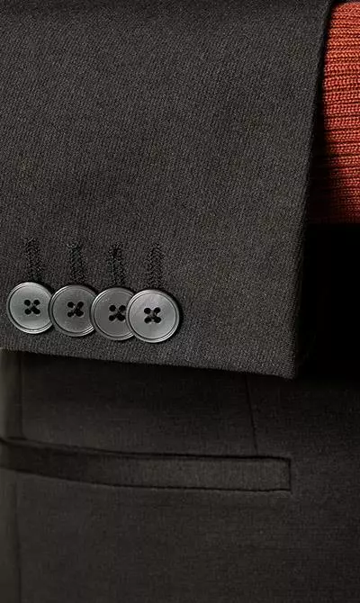 Details zum Sakko: Reverskragen, Zwei-Knopf-Sakko, Einreiher, Brustleistentasche, Leistentasche/n, Doppelschlitze, Zierschlitz mit Kissing Buttons, Leistentasche/n innen beidseitig