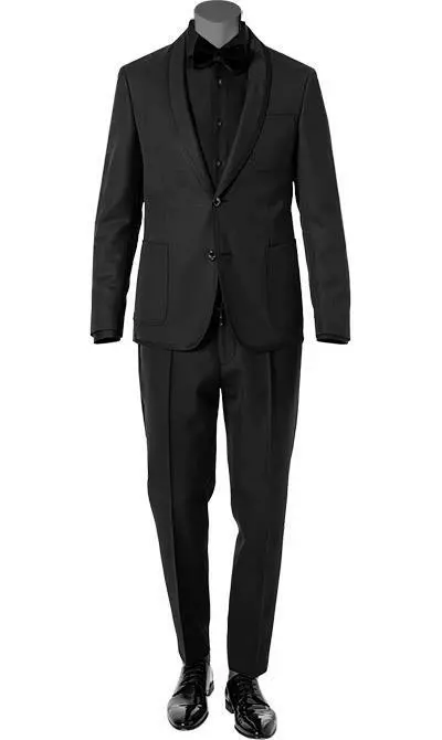 Dieser Smoking ist die perfekte Wahl für Männer die es stilvoll aber modern mögen. Die schlanke Silhouette und die dezenten Kontrastdetails definieren die Optik. Der Bund mit Tunnelzug und die seitlichen Galonstreifen sorgen dabei für einen sportiv-eleganten Look.