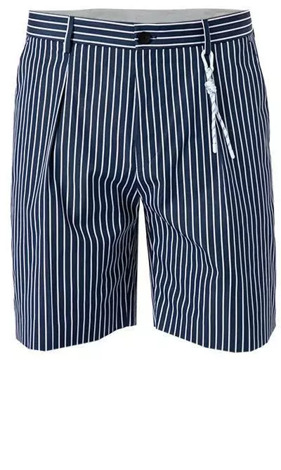 Mit dieser luftigen Anzugvariante ziehen Sie die Blicke auf sich! Statt Sakko ein ungefütterter Blouson im Mix mit Bermudashorts – so wird der Freizeitanzug für sonnige Tage neu definiert. Ein cooler und lässiger Look, der mit maritimen Streifen für frischen Wind im Kleiderschrank sorgt. Eine unverwechselbare und ausdrucksstarke Optik- ideal für modebewusste Männer.