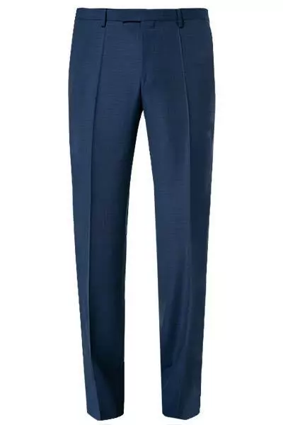 Details: Anzughose, Gerade geschnitten, Bügelfalten, Normale Bundhöhe