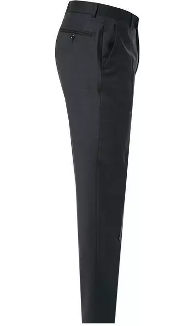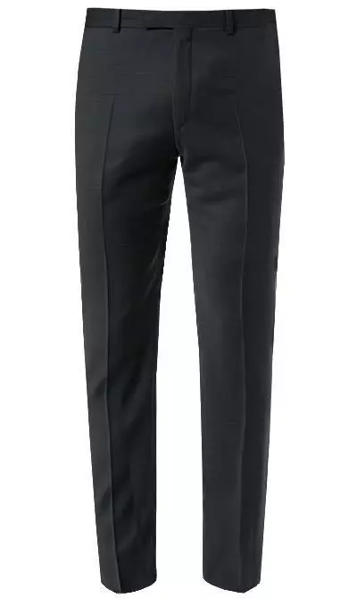 Details zur Hose: Verlängerter Bund mit doppeltem Hakenverschluss, Zip-Fly, Schmal geschnitten, Eingrifftasche/n vorne, Paspeltasche/n hinten geknöpft, Bügelfalte