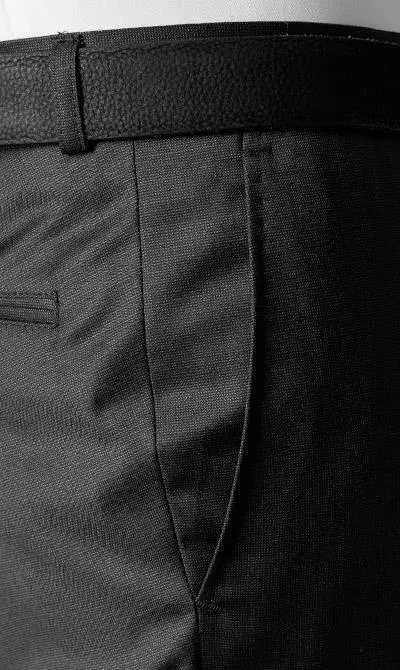 Details zur Hose: Verlängerter Bund, Schmal geschnitten, Paspeltasche/n, Seitliche Eingrifftaschen, Bügelfalte