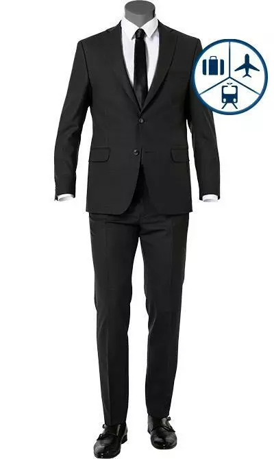 Dieser Anzug in moderner, schmaler Passforn ist genau richtig, wenn Sie Wert auf Design und Qualität legen. Das knitterarme Material aus einer Wollmischung mit Stretchanteil bietet angenehmen Tragekomfort nicht nur auf Reisen. Ziernähte in Handstich Optik verleihen dem Zweiteiler einen individuellen Look.