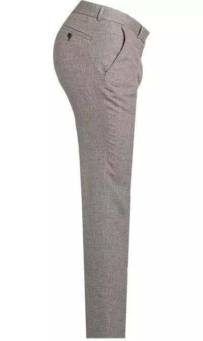 Details zur Hose: Verlängerter Bund, Zip-Fly, Leistentasche/n hinten geknöpft, Seitliche Eingrifftaschen, Bügelfalte