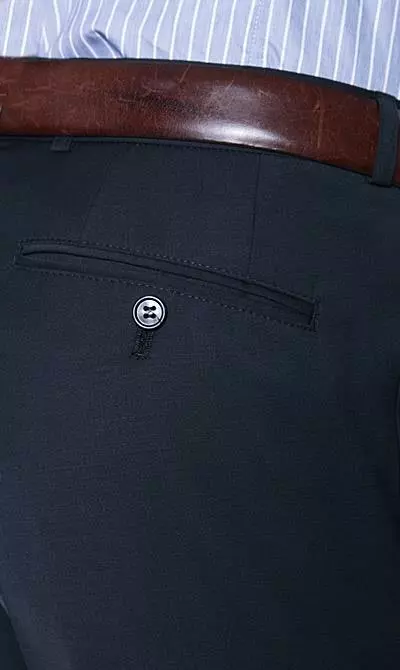 Details zur Hose: Verlängerter Bund, Schmal geschnitten, Paspeltasche/n, Seitliche Eingrifftaschen, Bügelfalte