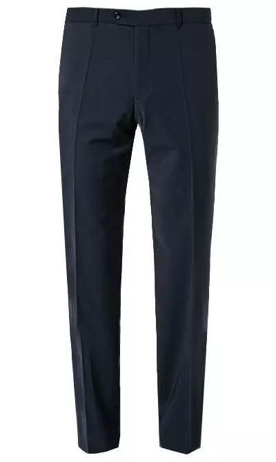 Details zur Hose: Verlängerter Bund, Gerade geschnitten, Paspeltasche/n hinten, geknöpft, Seitliche Eingrifftaschen, Bügelfalte