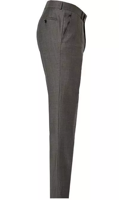 Details zur Hose: Verlängerter Bund, Schmal geschnitten, Leistentasche/n hinten geknöpft, Seitliche Eingrifftaschen mit Ziernaht in Handstich-Optik, Bügelfalte