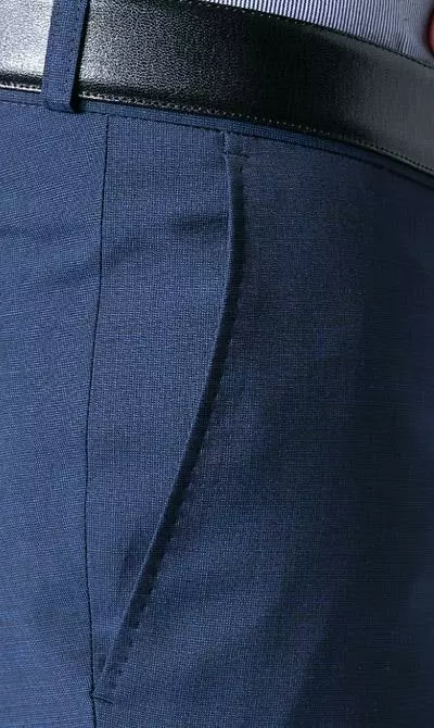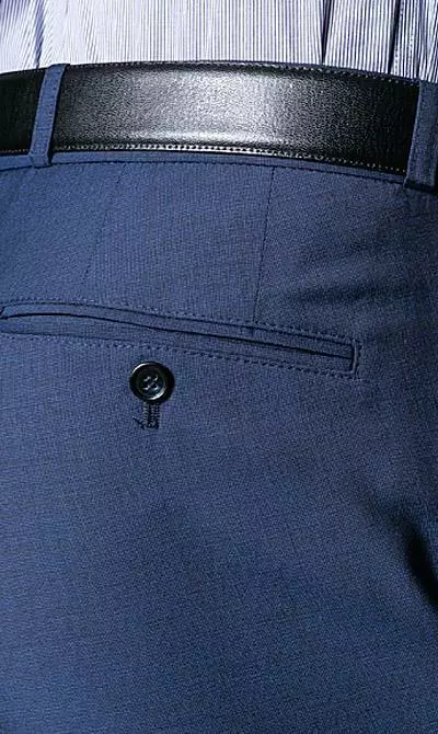 Details zur Hose: Verlängerter Bund, Schmal geschnitten, Aufgesetzte Taschen, Paspeltasche/n, Bügelfalte