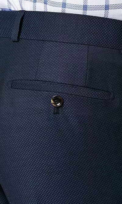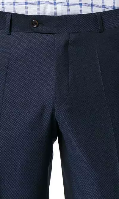 Details zur Hose: Verlängerter Bund, Schmal geschnitten, Eingrifftasche/n, Paspeltasche/n, Bügelfalte