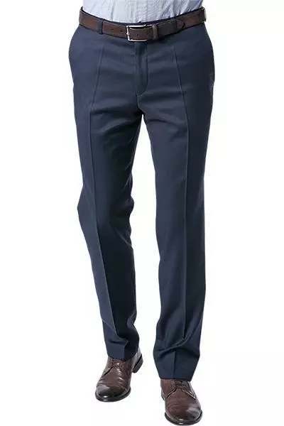 Details: Anzughose, Schmal geschnitten, Bügelfalten, Normale Bundhöhe