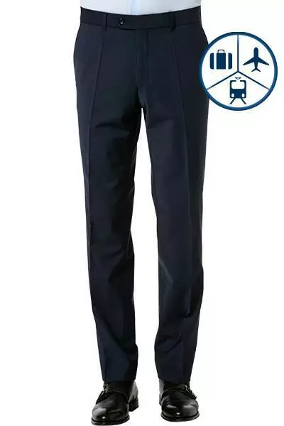 Das Material ist feiner Schurwoll-Mix mit Stretch-Anteil, das kaum knittert und damit stets in Form bleibt. Die Hose ist hochwertig verarbeitet, die Innenausstattung mit dem Hemdenstopper am Bund ist funktional. Ob Reise oder Meeting-Marathon – Ihr Auftritt im Travel-Anzug mit passendem Sakko ist stets gepflegt und seriös. Der perfekte Begleiter für alle, die viel unterwegs sind.