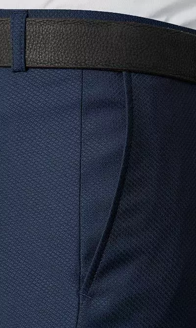 Details zur Hose: Verlängerter Bund, Schmal geschnitten, Leistentasche/n, Seitliche Eingrifftaschen, Bügelfalte