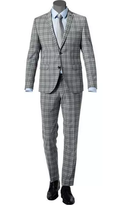 Eine modisch schmale Silhouette, die leichte Schurwoll-Qualität und das ausdrucksstarke Karo-Dessin machen diesen Anzug aus. Logo-Details am Futter verleihen dem Zweiteiler eine besondere Note. Dieser Anzug setzt Sie gekonnt in Szene, denn das Karo kommt ganz groß raus.