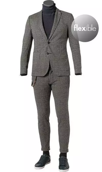 Diesen modernen Anzug können Sie ganz individuell kombinieren. Eine erstklassige Verarbeitung und eine hochwertige Jersey Qualität sorgen dafür, dass das traditionelle Handwerk und die Schneiderkunst spürbar und sichtbar bleiben, ohne den gegenwärtigen Zeitgeist aus den Augen zu verlieren. Ein Zweiteiler für kultivierten Stil und Klasse mit einer schmalen, kompetenten Passform, die mit dem bequemen Oberstoff und einem Stretchfutter außergewöhnlichen Komfort erhält.