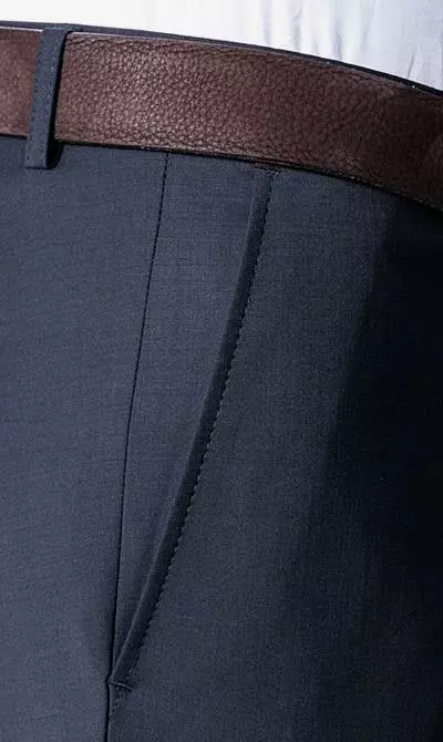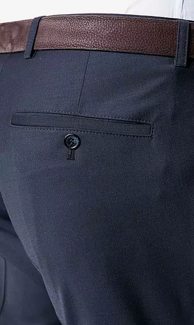 Details zur Hose: Verlängerter Bund, Schmal geschnitten, Aufgesetzte Taschen, Leistentasche/n, Bügelfalte