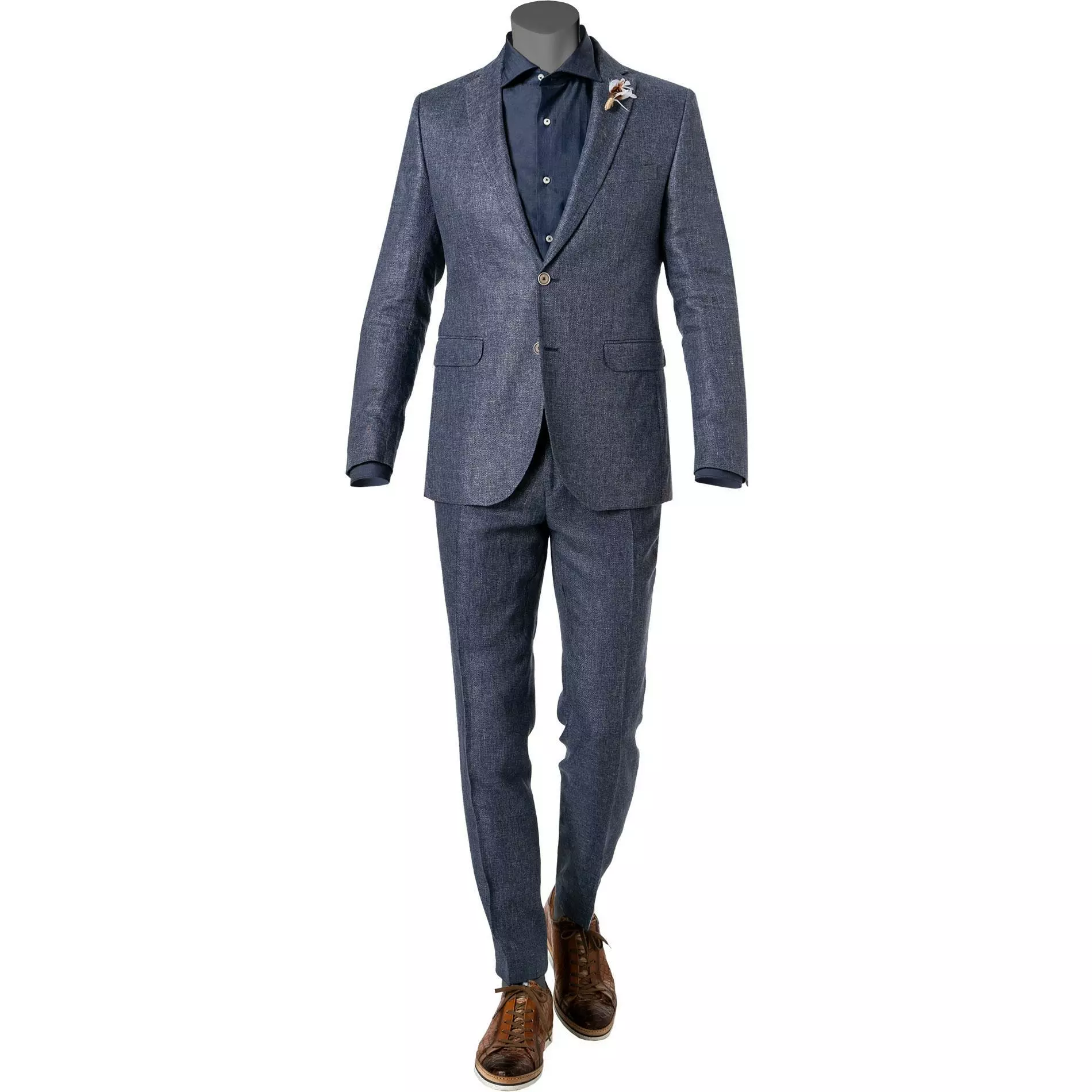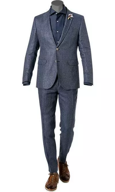 Diese Anzug punktet rundum. Das Modell ist aus einem Leinen-Mix gefertigt, präsentiert sich mit einem cleanen, erfrischenden Erscheinungsbild und sorgt mit einer schmalen Passform für eine schlanke Silhouette. Ein moderner Begleiter für gehobene Anlässe, der Stil und Klasse vereint und mit einer hochwertigen Verarbeitung begeistert.