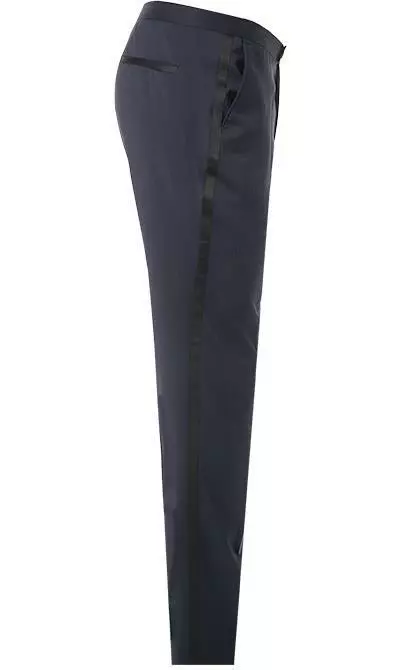 Details zur Hose: Verlängerter Bund, Schmal geschnitten, Leistentasche/n, Seitliche Eingrifftaschen, Bügelfalte, Mit Galonstreifen