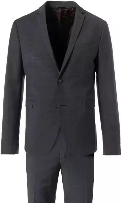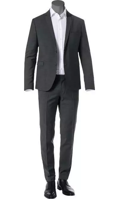 Der Anzug ist schmal geschnitten und betont die männliche Silhouette. Das cleane Design wirkt elegant und passt perfekt zu Slim-Fit-Hemd, Krawatte und Lederschnürern. Für einen edlen und souveränen Auftritt.