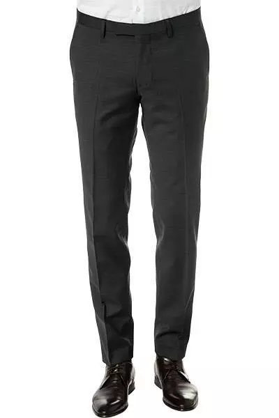 Details: Anzughose, Schmal geschnitten, Bügelfalten, Normale Bundhöhe