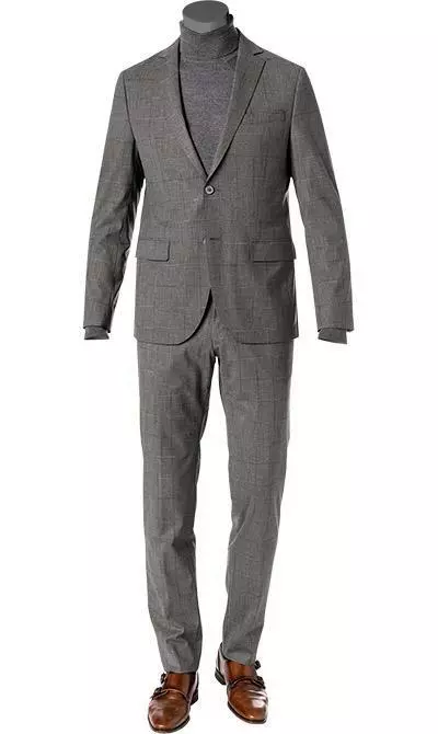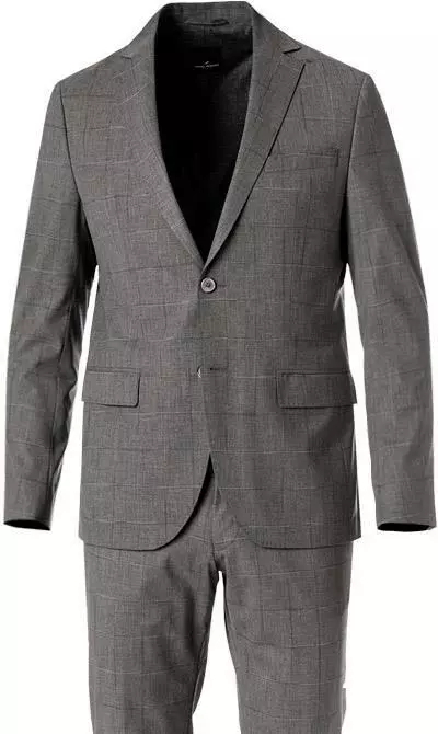 Dieser Business-Zweiteiler besticht in einem dezenten, breiten Karo-Muster und zeichnet sich durch klassische Elemente wir einem Reverskragen sowie Kissing-Buttons aus. Der Anzug verspricht Ihnen einen seriösen und souveränen Auftritt, sodass einem erfolgreichen Meeting nichts mehr im Wege steht!