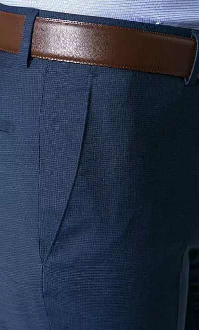 Details zur Hose: Verlängerter Bund, Schmal geschnitten, Aufgesetzte Taschen, Leistentasche/n, Bügelfalte