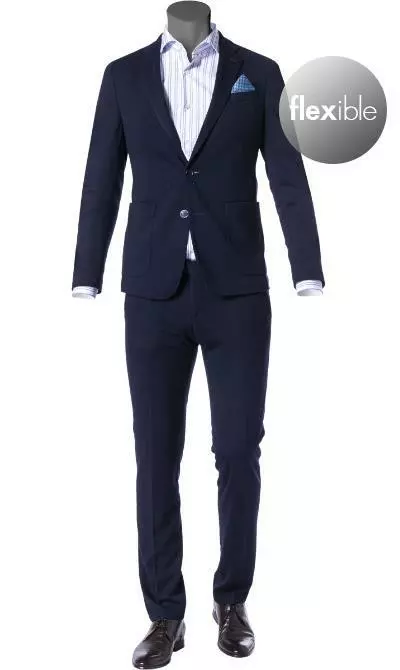 Der Jersey-Anzug ist perfekt für einen stilsicheren Auftritt im Büro! Die hochwertige Verarbeitung und der zeitlose Chic in Kombination mit hohem Tragekomfort sowie absoluter Bewegungsfreiheit zeichnen diesen souveränen Zweiteiler aus. Klassische Elemente werden durch die melierte Optik und dem angesagten Extra Slim-Fit modern ergänzt.