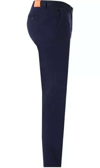 Details zur Hose: Verlängerter Bund, Schmal geschnitten, Leistentasche/n geknöpft, Seitliche Eingrifftaschen, Bügelfalte