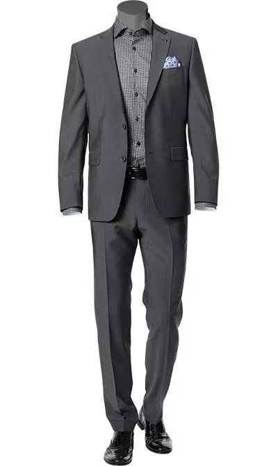 Modisch, smart, klassisch chic – mit diesem Anzug überzeugen Sie sowohl im Business-Alltag als auch bei festlichen Anlässen. Erstklassiger Komfort, beste Materialien und eine hochwertige Verarbeitung stehen im Vordergrund und lassen den Anzug zur einer sehr gern getragenen, gehobenen Garderobe werden. Das edle Tuch und der moderne, körpernahe Schnitt perfektionieren den eleganten Auftritt.