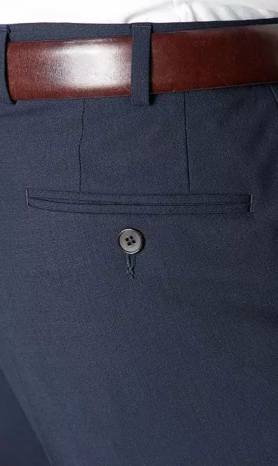 Details zur Hose: Verlängerter Bund, Paspeltasche/n hinten geknöpft, Seitliche Eingrifftaschen, Bügelfalte