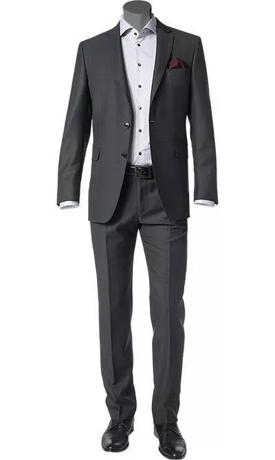 Ein edler Premium-Anzug für jeden Anlass, der mit höchstem Tragekomfort und exzellenter Verarbeitung besticht. Feinste italienische Schurwoll-Qualität, die durch ihre natürlichen Eigenschaften stets in Form bleibt, sorgt für einen perfekten Auftritt. Die elegante, klassische Passform sitzt mit dem Baukastensystem optimal. Das aktuelle Design mit raffinierten Details und der hochwertige Anspruch wird mit Ziernähten in Handstich-Optik gekonnt hervorgehoben. Die Innenausstattung präsentiert sich funktional.