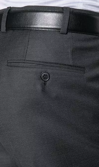 Details zur Hose: Verlängerter Bund, Gerade geschnitten, Aufgesetzte Taschen, Paspeltasche/n, Bügelfalte