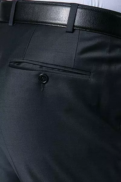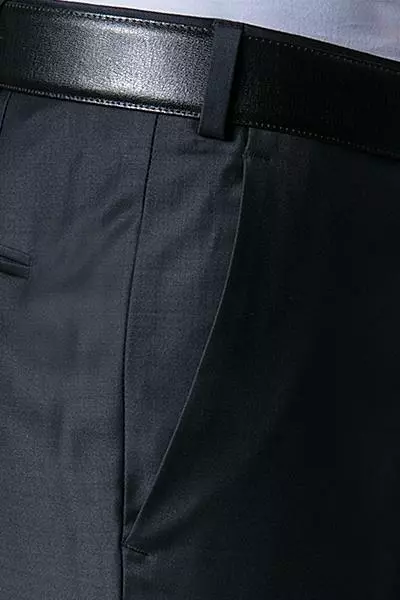 Details: Anzughose, Gerade geschnitten, Normale Bundhöhe