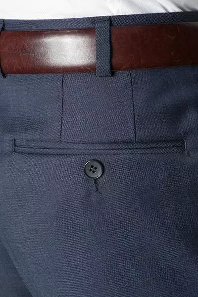 - Französische Taschen vorne, zwei Gesäßpaspeltaschen mit Knopf.
