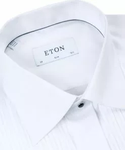 Smoking-Hemd aus feinster Baumwolle Baumwolle von ETON Dieses Frackhemd zeigt sich mit edlen Damaststreifen am Vorderteill, hat elegante Umschlagmanschetten und einen klassischen Kentkragen. Die austauschbaren Frackknöpfe runden das Modell perfekt ab.