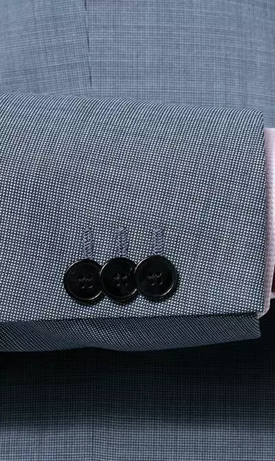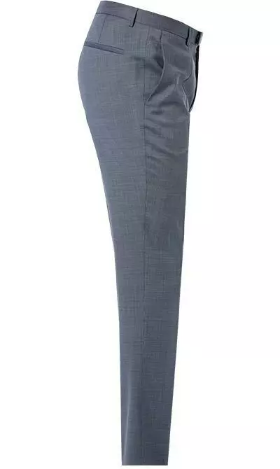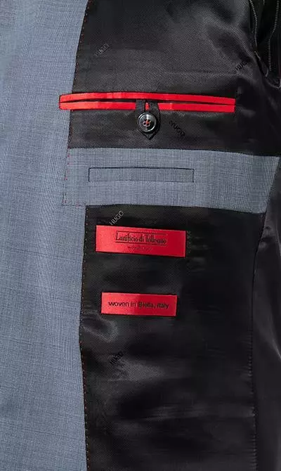 Hochwertig gefertigter Anzug in extra schmaler Passform. Die zeitgemäße Interpretation des klassischen Zwei-Knopf-Sakkos ist aus italienischer Schurwolle mit fein gewebtem Mikro-Dessin gefertigt. Innen-Details im charakteristischen Rot setzen markante Akzente.