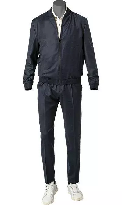 Mit diesem stylishen Anzug werden Sie zu einem trendy Eye-Catcher: Der Zweiteiler aus einem Blouson und einer Hose mit Tunnelzug in melierter Optik ist aus einem Schurwolle-Stretch gefertigt und sorgt so für einen angenehmen Tragekomfort. Ein smarter und lässiger Anzug, mit dem Sie sportive Eleganz ausstrahlen und mit dem ein ein topmodischer Auftritt gelingt.