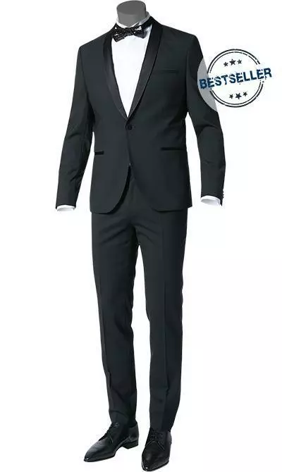 Smoking im Schurwoll-Mix von HUGO Dank super schmaler Passform und feinstem Schurwoll-Stretch bietet dieser Smoking Tragekomfort auf höchstem Niveau. Fein schimmernde Satin-Details und eine hochwertige Verarbeitung verleihen ihm einen luxuriösen Look. Mit diesem Abendanzug ist Ihnen bei feierlichen Anlässen ein exzellenter Auftritt garantiert.