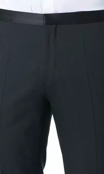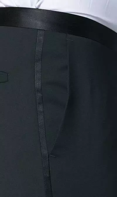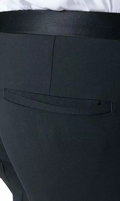 Details zur Hose: Verlängerter Bund, Schmal geschnitten, Aufgesetzte Taschen, Leistentasche/n, Bügelfalte