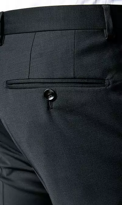 Details zur Hose: Verlängerter Bund, Schmal geschnitten, Paspeltasche/n, Seitliche Eingrifftaschen, Bügelfalte