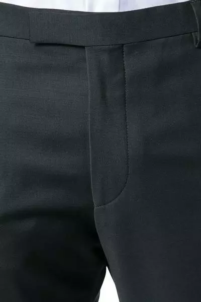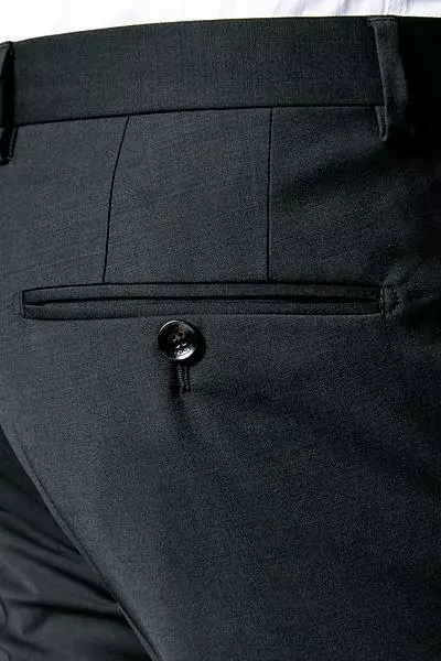 Details: Anzughose, Schmal geschnitten, Bügelfalten, Normale Bundhöhe