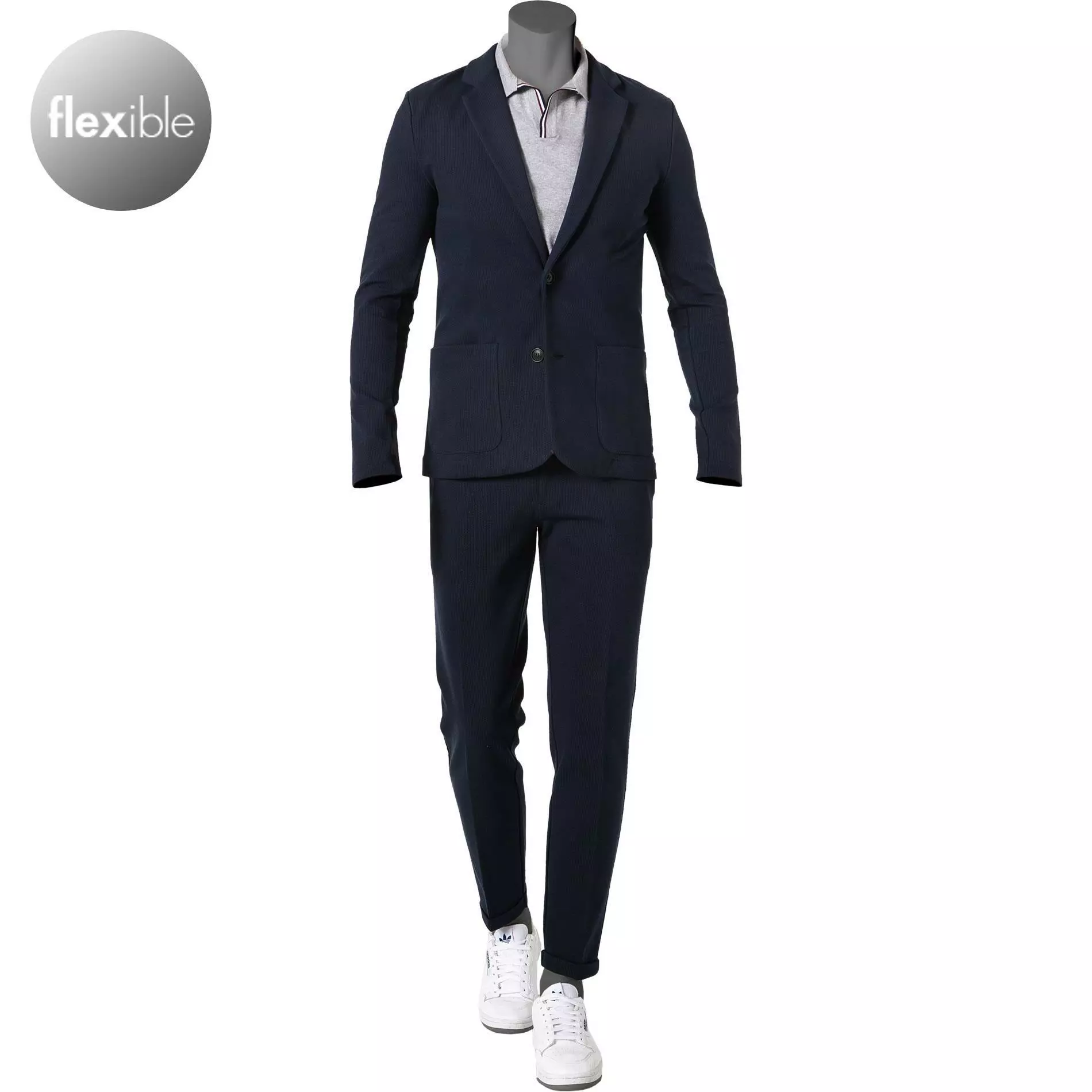 Dieser modische und bequeme Anzug aus strukturierter Jersey Qualität bietet Ihnen besten Tragekomfort. Das Modell aus Baumwoll-Stretch zeigt sich in einem sportlichen Design und überzeugt sowohl im Office als auch in Ihrer Freizeit.