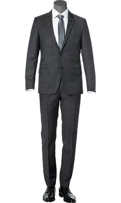 Klassisch und edel: Dieser Anzug erfüllt Ihre gehobenen Ansprüche. Hochwertig verarbeitet und aus reinr Schurwolle in melierter Optik präsentiert sich der Einreiher. Ein Logo-Anstecker am Revers sorgt für den modischen Akzent. Die sehr schmale Passform bringt eine schlanke Figur optimal zur Geltung.