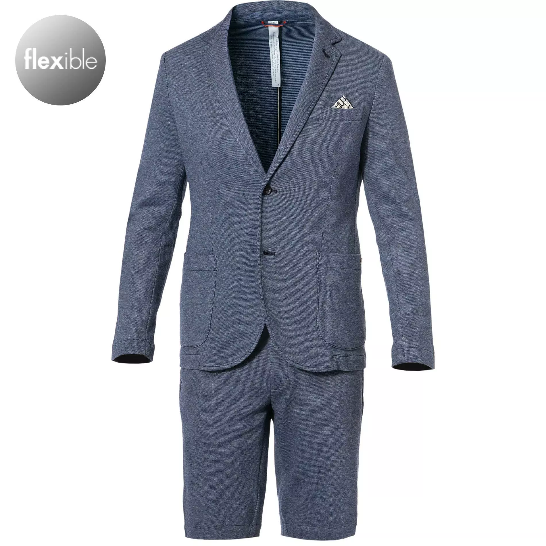 Dieser modische Zweiteiler ist aus komfortablem Baumwoll-Piqu'e mit viel Bewegungsfreiheit. Das ungefütterte Sakko zeigt sich mit Leistenbrusttasche und einem Einstecktuch, beidseitig aufgestzten Taschen und rückwärtigen Seitenschlitze. Die Shorts im Chino-Style hat einen bequemen hinteren Elasikbund und ist durch einen Kordelzug weitenregulierbar. Ein absolut trendiger Zweiteiler für die gepflegte Freizeit mit Blickfanggarantie.