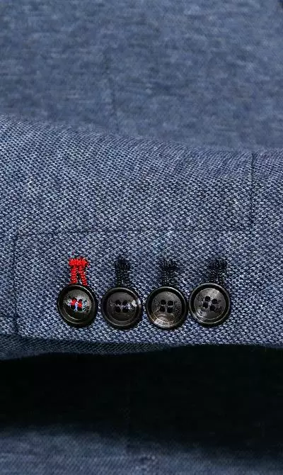 Label / Logo: Emblem auf rechter Sakko-Tasche und Band am Ärmelschlitz links