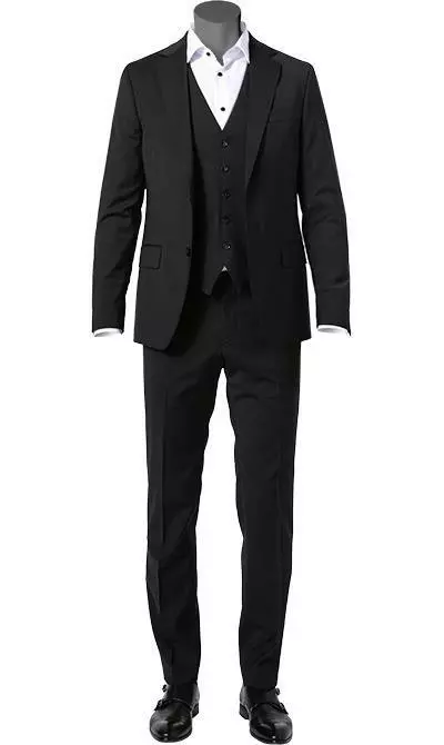 Ein sehr schmal geschnittener, taillierter Dreiteiler, passend für den Business Look ebenso wie für private Termine und Anlässe. Aus einer Wollmischung mit Stretchanteil ist dieses Modell eine optimale Wahl für angenehmen Tragekomfort. Ein Anzug mit Weste, der maskuline Eleganz ausstrahlt und einen smarten Look sowie eine moderne Silhouette verleiht.