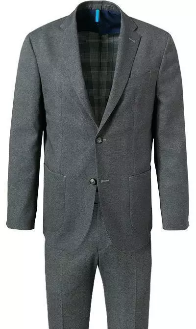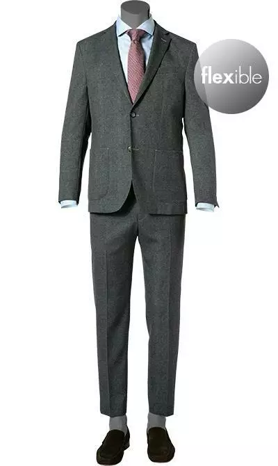 Die ideale Kombination für einen dynamischen Auftritt: Der schmal geschnittene Anzug zeigt sich in melierter Optik. Für außergewöhnlichen Tragekomfort sorgt die innovative FUTUREFLEX-Qualität, ein Material mit Power-Stretch, knitterfrei und wasserabweisend. Das halbgefütterte Sakko bringt zusätzliche Bewegungsfreiheit und unterstreicht mit der karierten Innenseite den modernen Look.