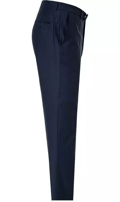 Details zur Hose: Verlängerter Bund, Schmal geschnitten, Leistentasche/n hinten geknöpft, Seitliche Eingrifftaschen, Bügelfalte
